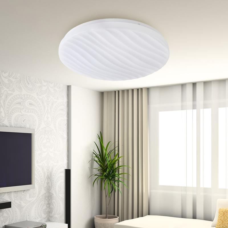 Рельефный дизайн рассеивателя, напоминающий морские волны, идеально сочетается с круглым плоским корпусом. За счет этого электросветильник освежит интерьер гостиной, спальни или прихожей.