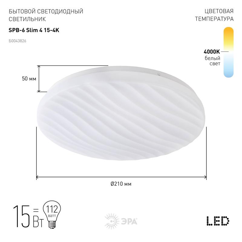 Характеристики Светильник потолочный светодиодный ЭРА Slim без ДУ SPB-6 Slim 4 15-4K 15Вт 4000K: