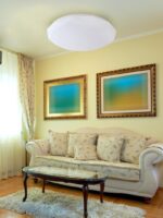 Благодаря дизайнерскому плафону светодиодная люстра выглядит эффектно. Рельефный орнамент в виде калейдоскопа идеально сочетается с плоской круглой формой. Такой потолочный светильник в стиле модерн изящно дополнит интерьер гостиной, кухни или спальни.