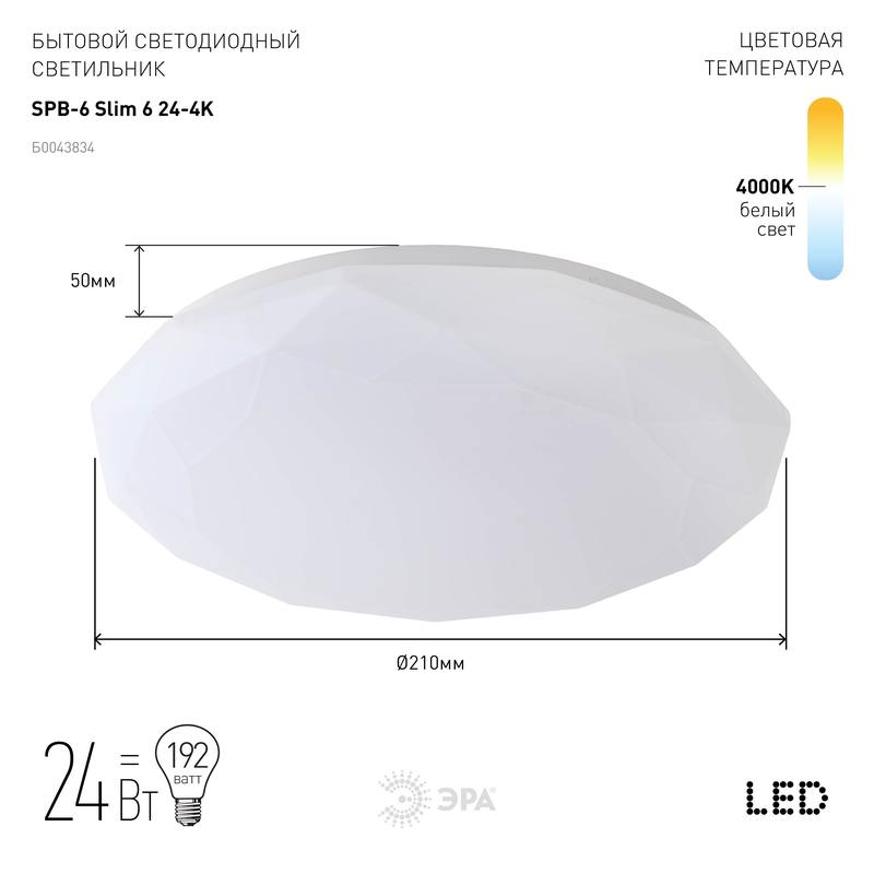 Мощность в 24 Вт и срок службы в 30 000 часов подарят долгую службу. Электросветильник SPB-6 "Slim 6" от компании ЭРА будет радовать Вас и ваш дом долгое время!