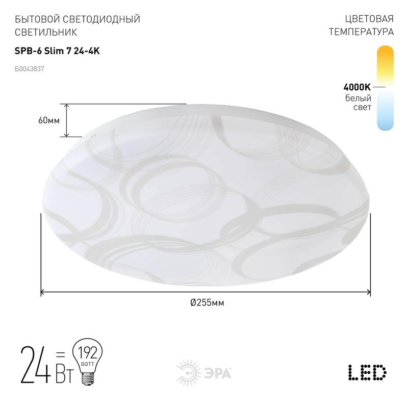 LED потолочный светильник SPB-6 "Slim 7" мощностью 24 Вт от компании ЭРА в белом цвете безупречное решение для любого интерьера! Наружный диаметр равен 25 см, люстра подходит для пространств различной площади.