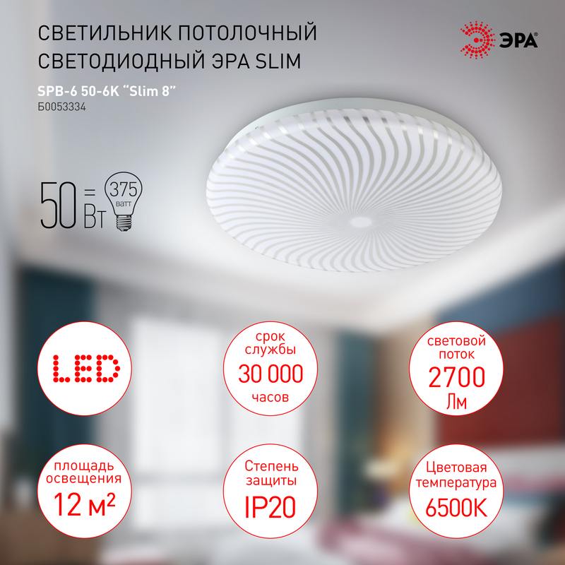 Потолочный светильник SPB-6 "Slim 8" мощностью 50 Вт от бренда ЭРА в нежном белом оттенке надежно впишется в любое дизайнерское решение!