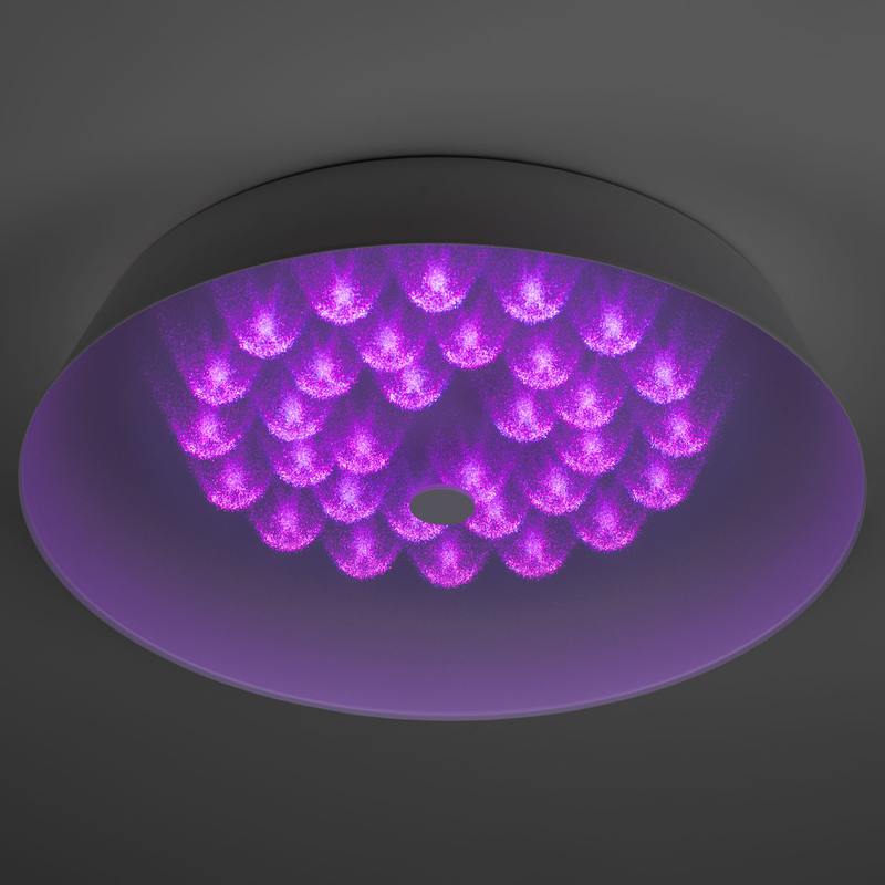 Накладной потолочный светильник LOCUS RGB. Модель подойдет для создания основного освещения в помещении. Светильник комплектуется современным призматическим рассеивателем, придающим ему футуристичный вид за счет 3D эффекта, и защищающим от ослепления светом. В комплекте поставки есть пульт ДУ, с помощью которого можно настраивать яркость, цветовую температуру, а также управлять режимами RGB подсветки.