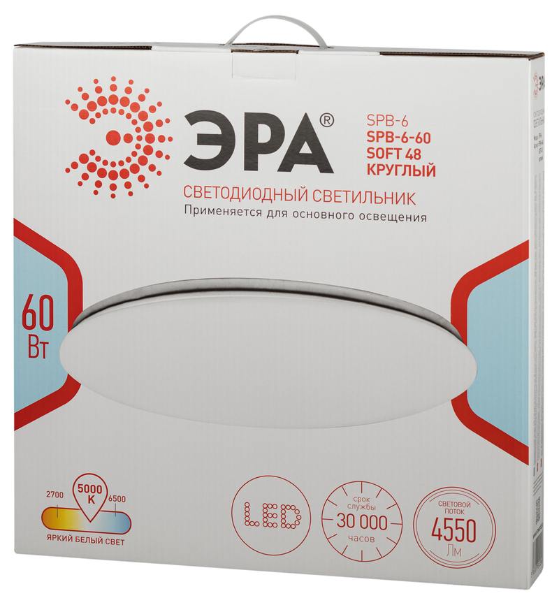Характеристики Светильник потолочный светодиодный ЭРА SPB-6-60 SOFT 48 круглый 60W 5000K: