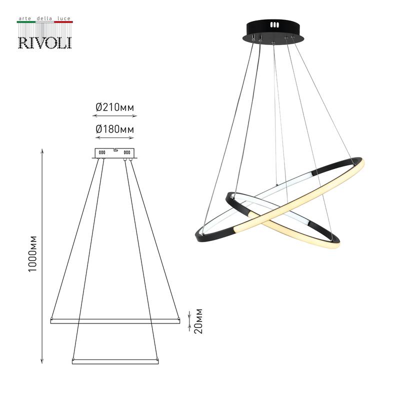 Коллекция подвесных светодиодных люстр на тросах Rivoli Lauren представлена в чёрном (арт. 6105-101) и белом (арт. 6105-103) цветах. Высоту тросов можно быстро и просто отрегулировать при монтаже LED-люстры на потолок. Дизайн люстры светодиодной LED Lauren представлен в виде сообщающихся светящихся колец. Температура света LED-люстры регулируется: нейтрально-белое, уютное тёплое или бодряще-холодное освещение. Многофункциональная подвесная светодиодная люстра Lauren от итальянского бренда Rivoli – прекрасное дизайнерское решение для дома или пространств сегмента horeca. В комплекте пульт ДУ для дистанционного управления подвесным светильником потолочным.