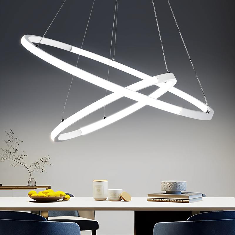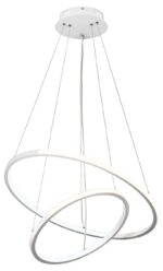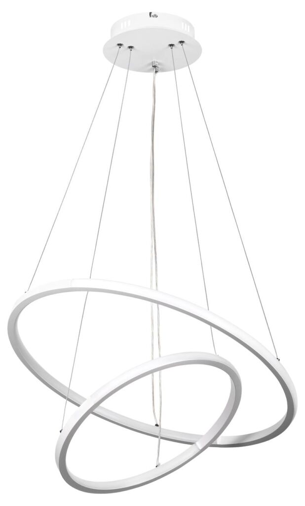 Подвесная люстра светодиодная LED в виде сообщающихся светящихся колец белого цвета — Rivoli Lauren (арт. 6105-103). Аналогичная люстра подвесная LED на тросах в чёрном цвете – арт. 6105-101. Длину тросов люстры подвесной светодиодной дизайнерской можно отрегулировать при монтаже на потолок.