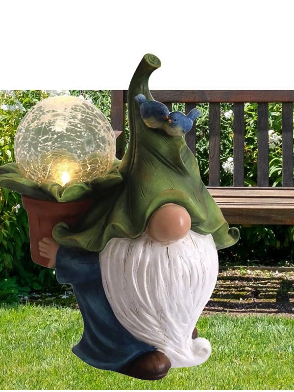 Cадовая фигурка «Гномик» на солнечной батарее. Заряжается от солнца в течение дня и включается автоматически с наступлением темноты с помощью датчика света. Фигурка выполнена из полистоуна — искусственный камень, сочетающий в себе все качества природного материала. Данный материал отличается повышенной прочностью, износостойкостью и устойчив к воздействию влаги, ультрафиолетовых лучей и других разрушающих факторов внешней среды. Размер фигурки 18х16х27 см