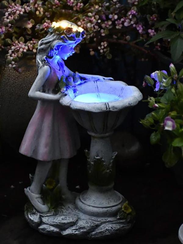 Cадовая фигурка «Лесная фея» на солнечной батарее. Заряжается от солнца в течение дня и включается автоматически с наступлением темноты с помощью датчика света. Фигурка выполнена из полистоуна — искусственный камень, сочетающий в себе все качества природного материала. Данный материал отличается повышенной прочностью, износостойкостью и устойчив к воздействию влаги, ультрафиолетовых лучей и других разрушающих факторов внешней среды. Размер фигурки 17х12х29 см