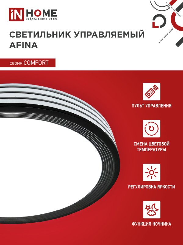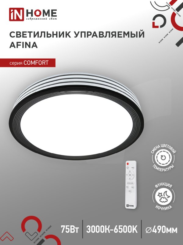 Назначение и применение Светильник светодиодный COMFORT AFINA 75Вт 230В 3000-6500K 6000Лм 490×90мм с пультом ДУ IN HOME