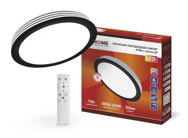 Характеристики Светильник светодиодный COMFORT AFINA 75Вт 230В 3000-6500K 6000Лм 490×90мм с пультом ДУ IN HOME: