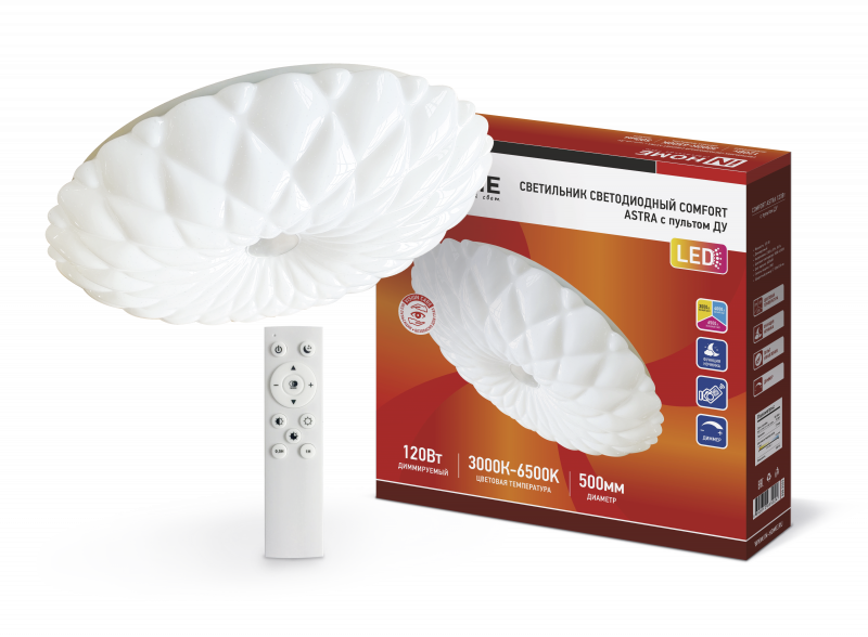Назначение и применение Светильник светодиодный COMFORT ASTRA 120Вт 230В 3000-6500K 9600Лм 500×100мм с пультом ДУ IN HOME