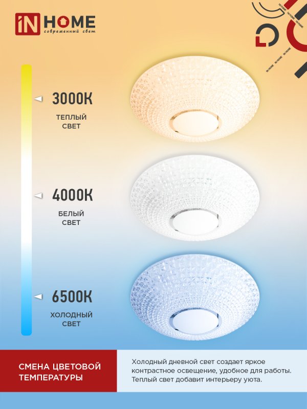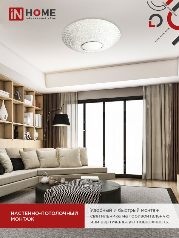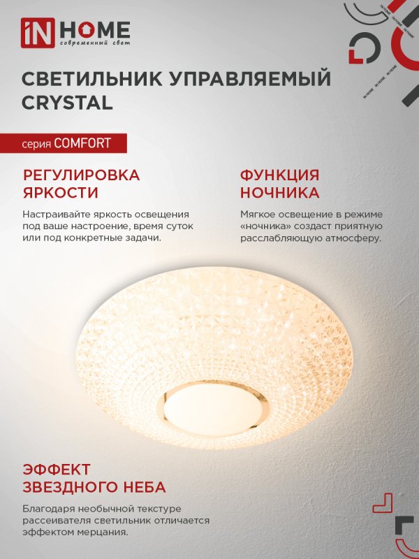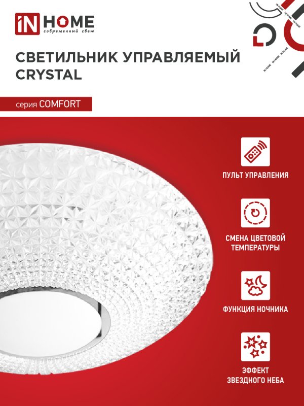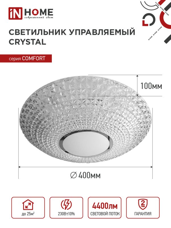 Назначение и применение Светильник светодиодный COMFORT CRYSTAL 55Вт 230В 3000-6500K 4400Лм 400×100мм с пультом ДУ IN HOME