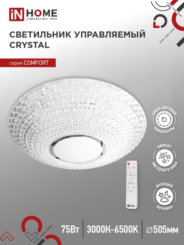 Назначение и применение Светильник светодиодный COMFORT CRYSTAL 75Вт 230В 3000-6500K 6000Лм 505×125мм с пультом ДУ IN HOME