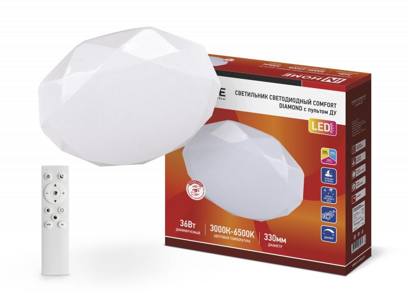 Назначение и применение Светильник светодиодный COMFORT DIAMOND 36Вт 230В 3000-6500K 2900Лм 350×90мм с пультом ДУ IN HOME