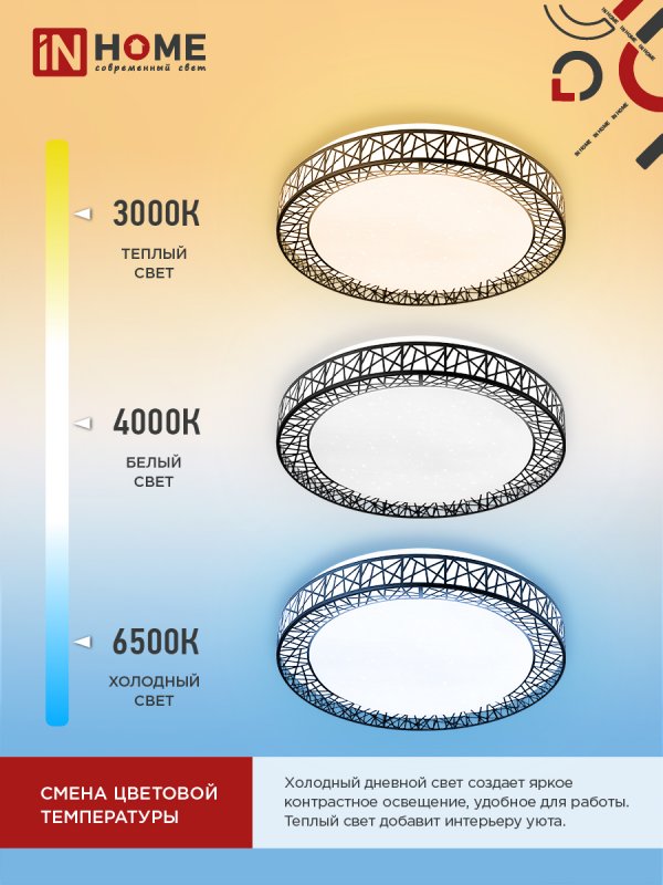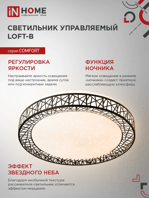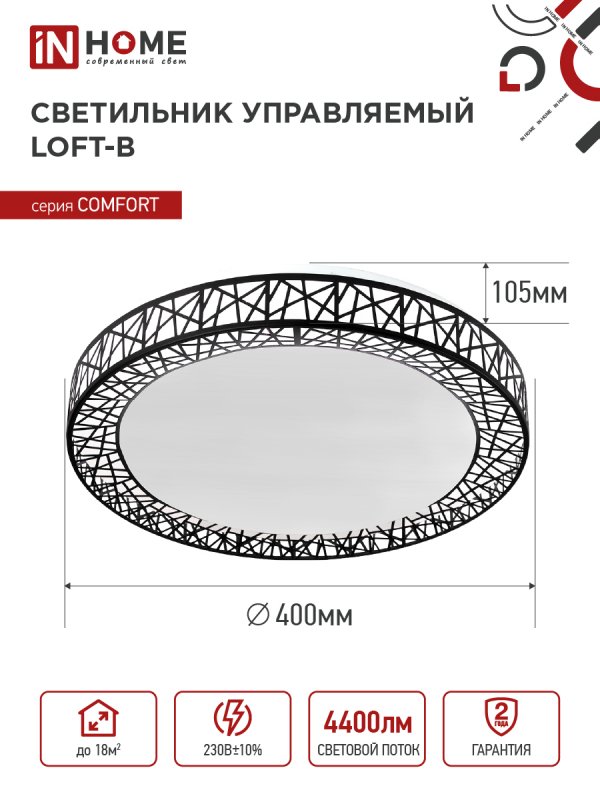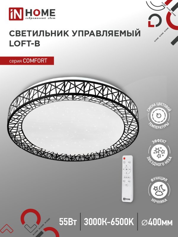 Назначение и применение Светильник светодиодный COMFORT Loft-B 55Вт 230В 3000-6500K 4400Лм 400×105мм с пультом ДУ IN HOME