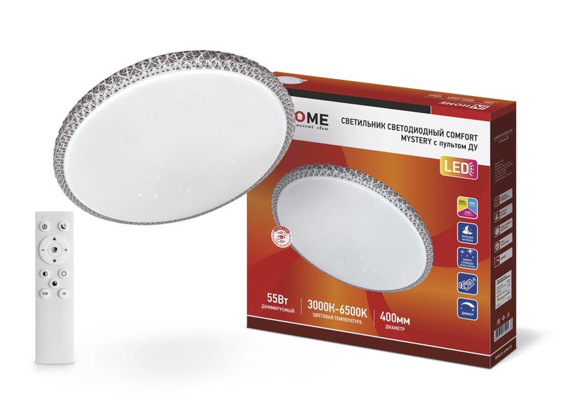 Характеристики Светильник светодиодный COMFORT MYSTERY 55Вт 230В 3000-6500K 4400Лм 400×70мм с пультом ДУ IN HOME: