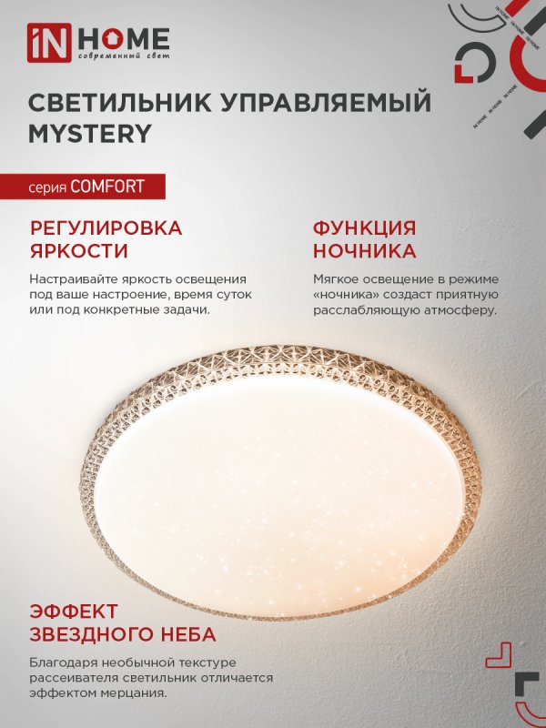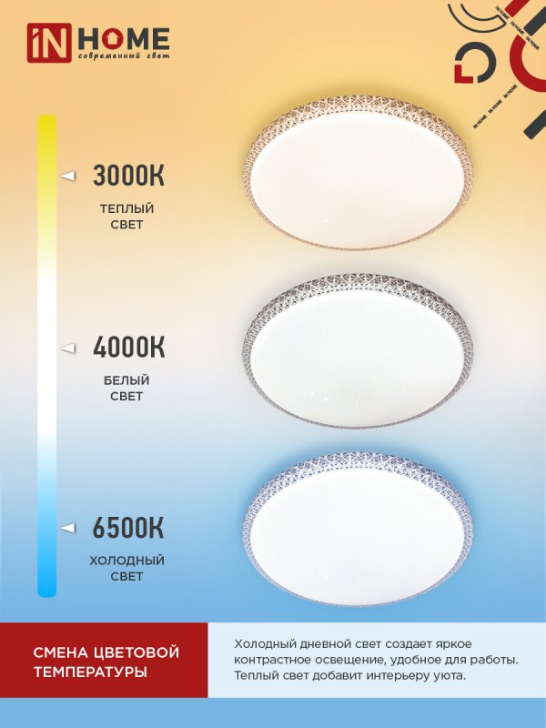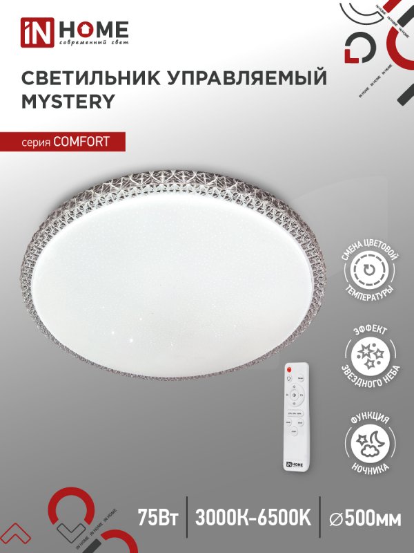 Назначение и применение Светильник светодиодный COMFORT MYSTERY 75Вт 230В 3000-6500K 6000Лм 500×85мм с пультом ДУ IN HOME