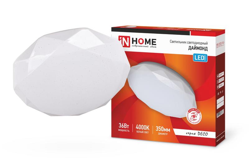 Характеристики Светильник светодиодный серии DECO ДАЙМОНД 36Вт 230В 4000К 3240Лм 380х55мм IN HOME: