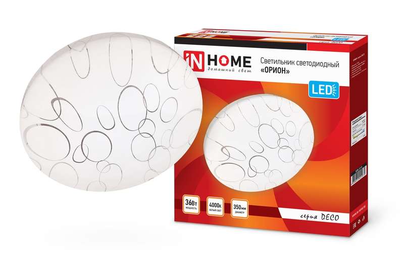 Характеристики Светильник светодиодный серии DECO ОРИОН 36Вт 230В 4000К 3240Лм 380х55мм IN HOME: