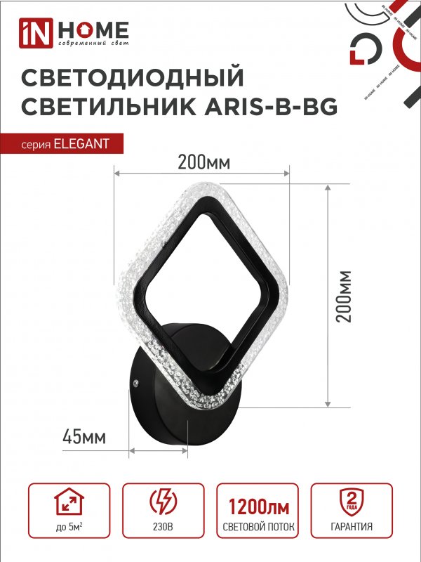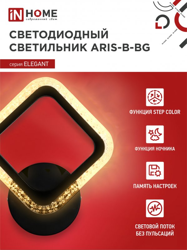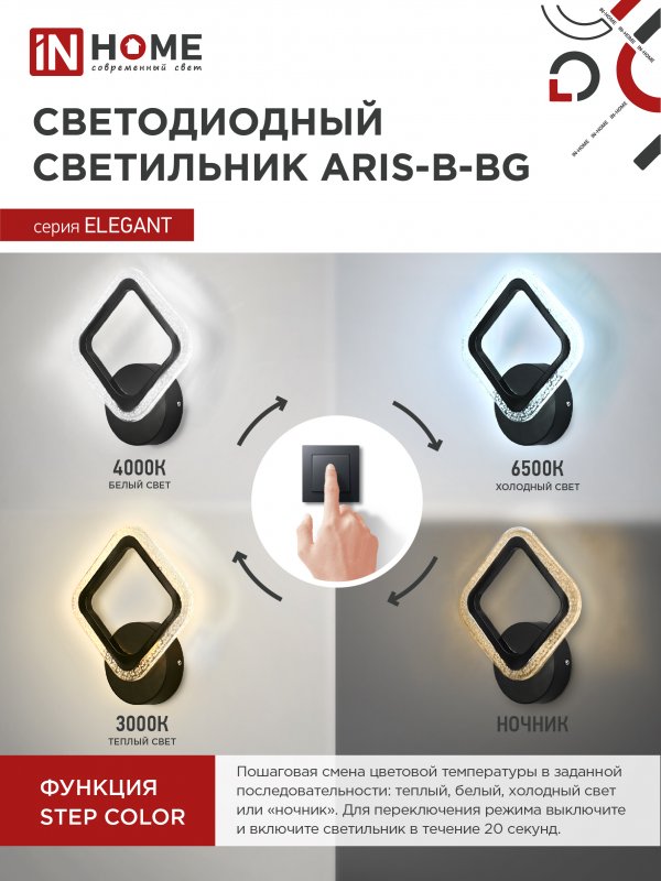 Характеристики Светильник светодиодный ELEGANT ARIS-B-BG 15Вт 230В 3000-6500K 1200Лм STEP COLOR черный IN HOME: