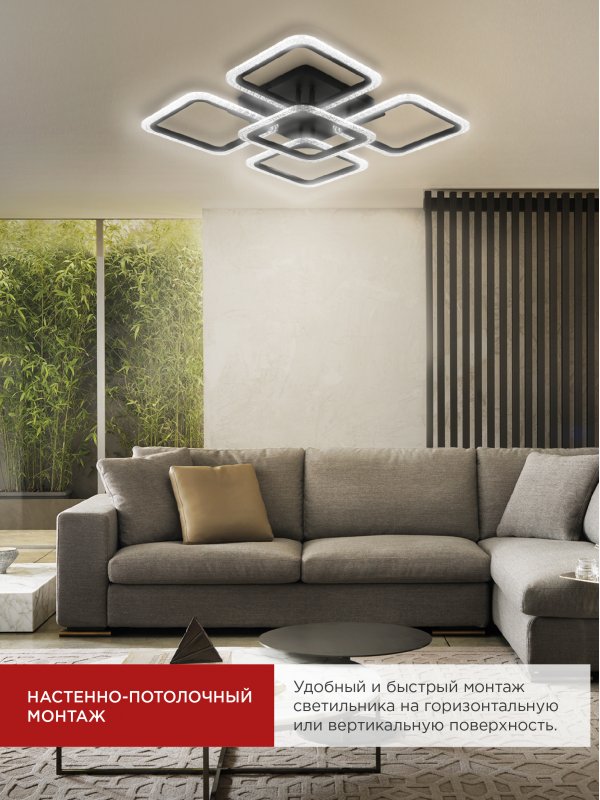 Характеристики Светильник светодиодный ELEGANT ARIS-B-ВG 90Вт 230В 3000-6500K 7000Лм 590х590х115мм ПУ черный IN HOME: