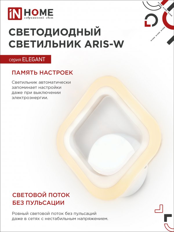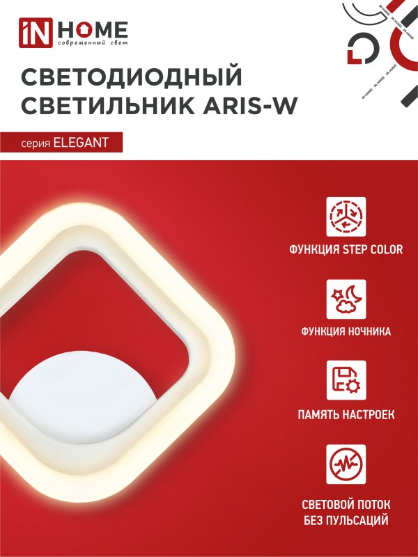 Назначение и применение Светильник светодиодный ELEGANT ARIS-W 15Вт 230В 3000-6500К 1200Лм STEP COLOR белый IN HOME