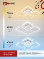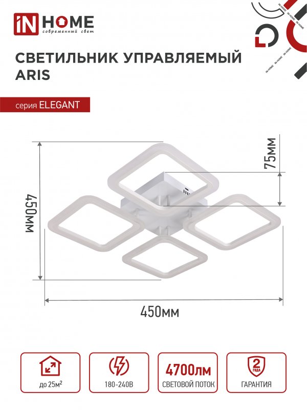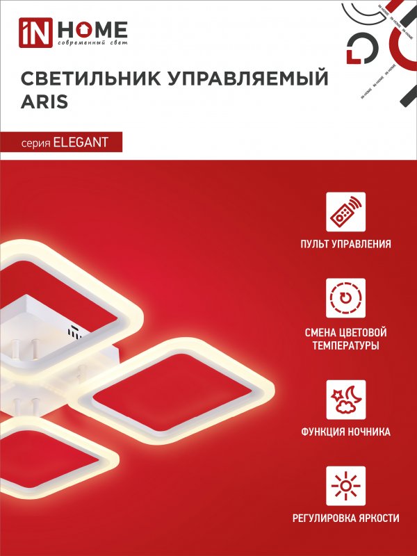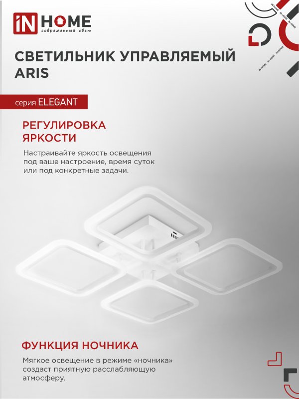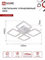 Характеристики Светильник светодиодный ELEGANT ARIS-W 60Вт 230В 3000-6500K 4700Лм 450х450х75мм c пультом ДУ белый IN HOME: