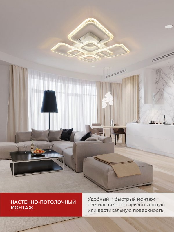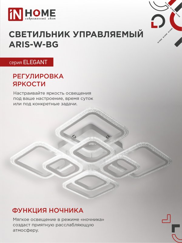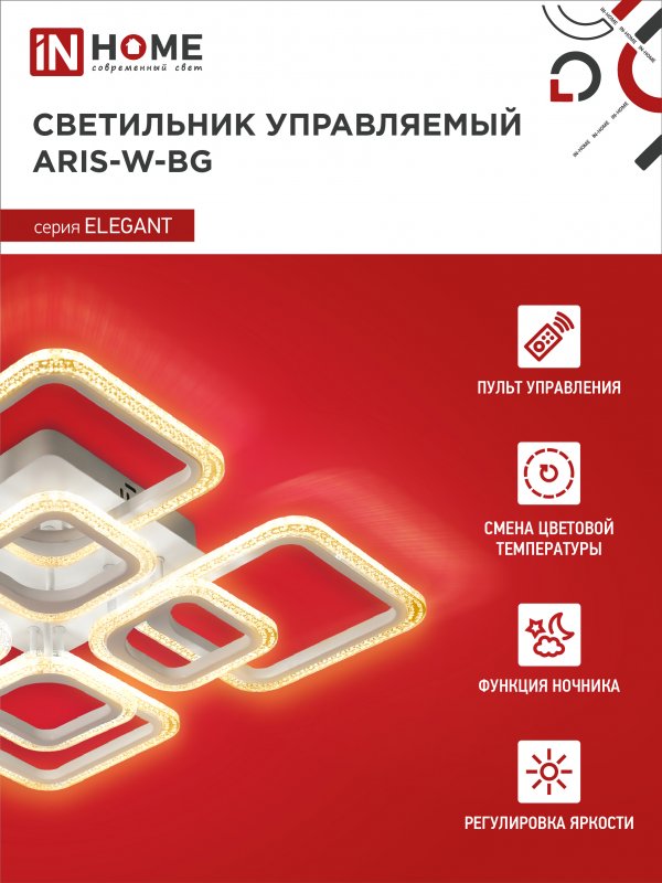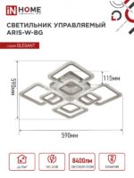 Характеристики Светильник светодиодный ELEGANT ARIS-W-BG 120Вт 230В 3000-6500K 8400Лм 590х590х115мм ПУ белый IN HOME: