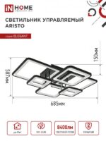 Характеристики Светильник светодиодный ELEGANT ARISTO-B 120Вт 230В 3000-6500K 8400Лм 686х587х151мм пульт ДУ черный IN HOME: