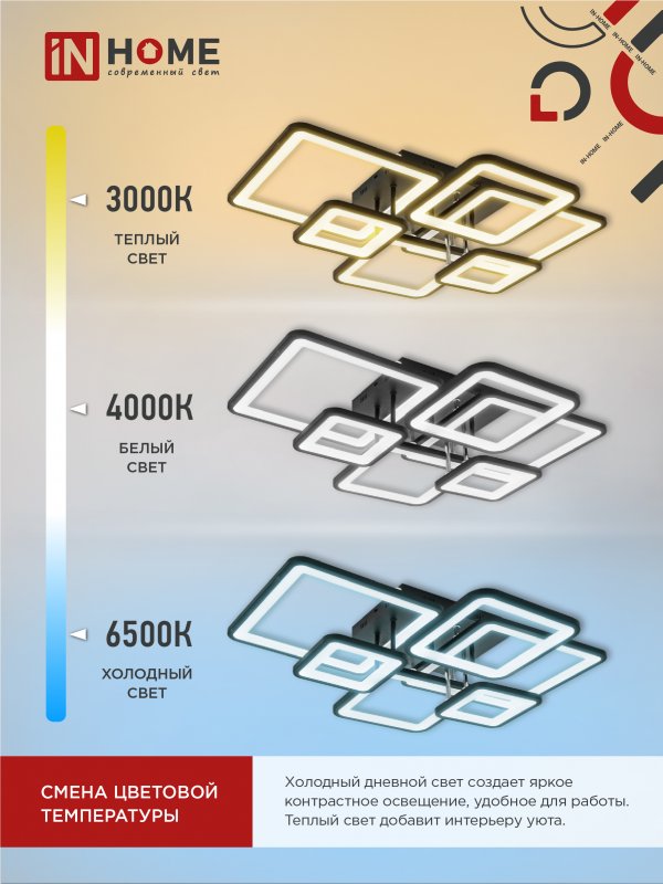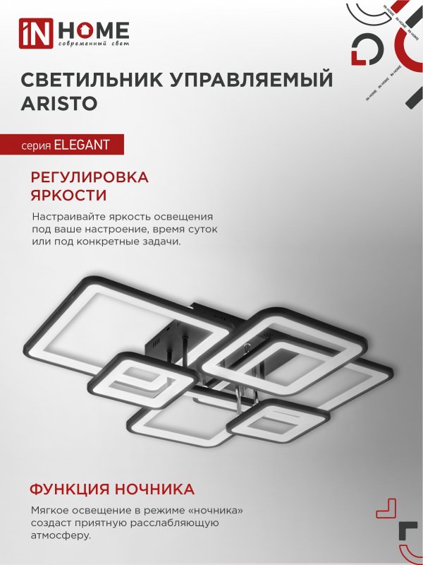 Характеристики Светильник светодиодный ELEGANT ARISTO-B 120Вт 230В 3000-6500K 8400Лм 686х587х151мм пульт ДУ черный IN HOME: