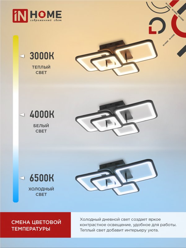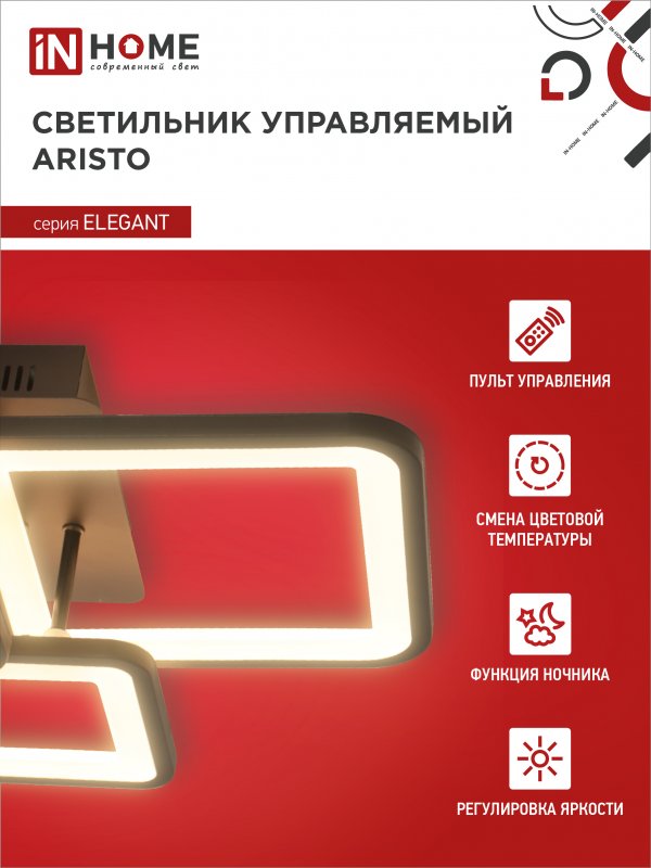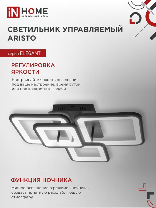 Характеристики Светильник светодиодный ELEGANT ARISTO-B 90Вт 230В 3000-6500K 7000Лм 535х370х151мм пульт ДУ черный IN HOME: