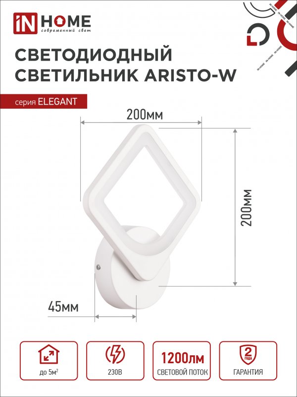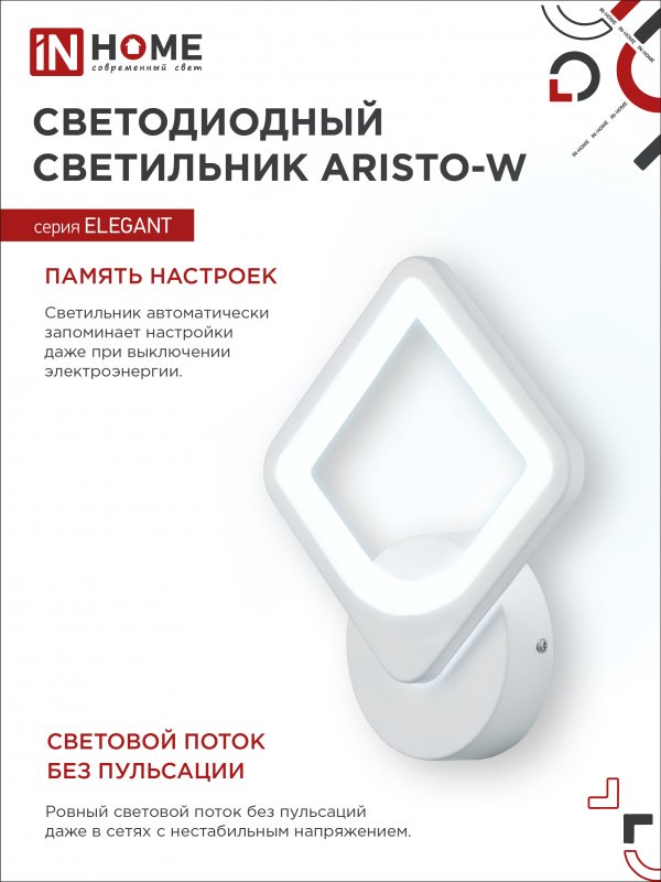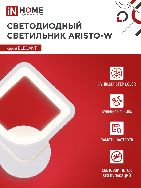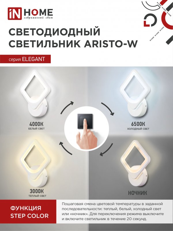 Характеристики Светильник светодиодный ELEGANT ARISTO-W 15Вт 230В 3000-6500K 1200Лм STEP COLOR белый IN HOME: