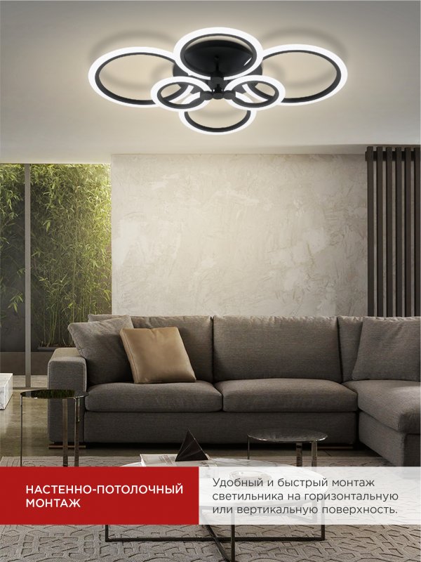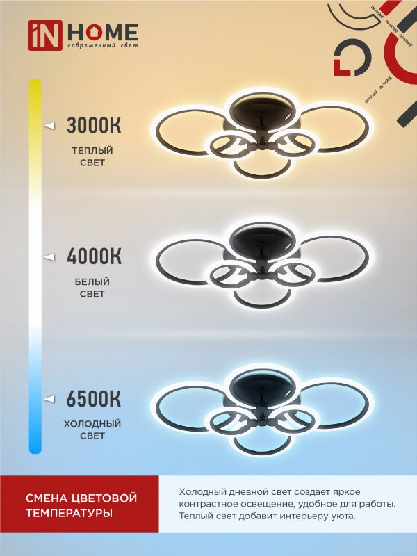 Назначение и применение Светильник светодиодный ELEGANT BLISS-B 120Вт 230В 3000-6500K 8400Лм 780х550х130мм c пультом ДУ черный IN HOME