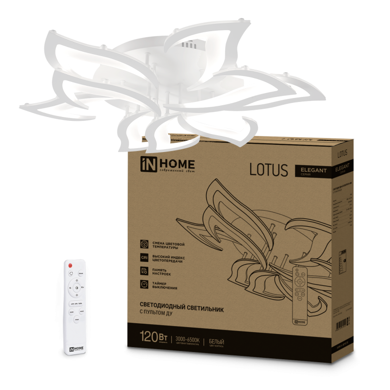 Характеристики Светильник светодиодный ELEGANT LOTUS 120Вт 230В 3000-6500K 8400Лм 810х700х120мм c пультом ДУ белый IN HOME: