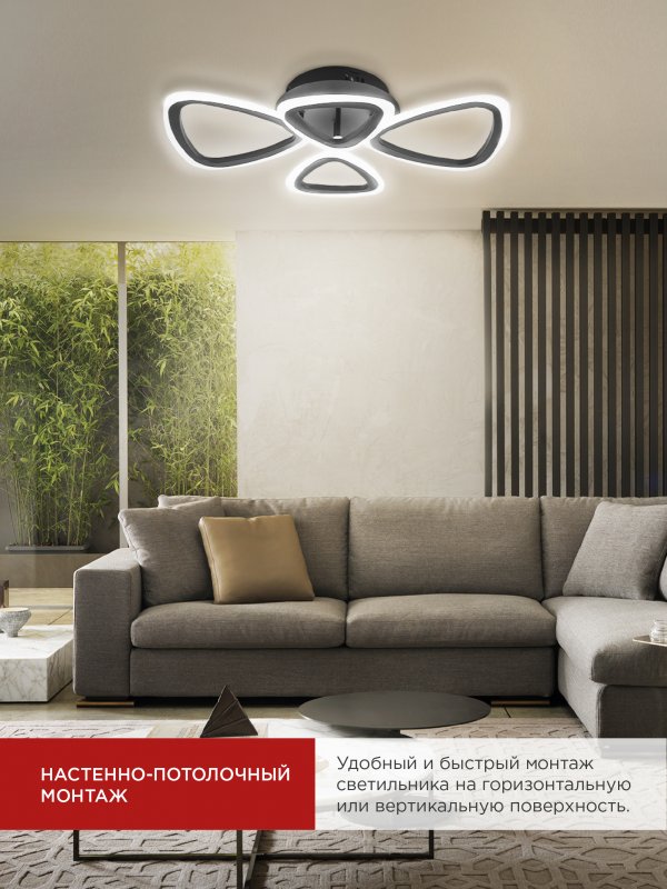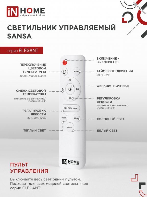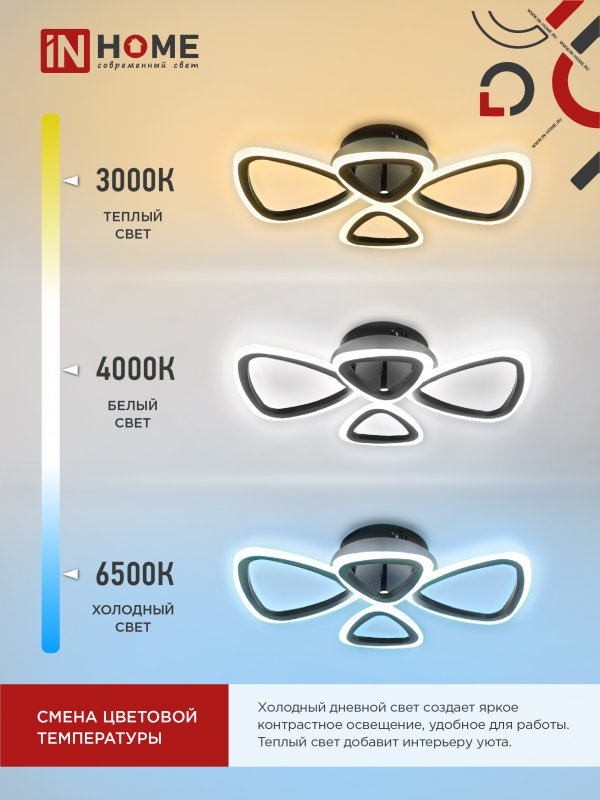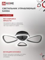 Характеристики Светильник светодиодный ELEGANT SANSA-B 60Вт 230В 3000-6500K 4700Лм 600х400х75мм c пультом ДУ черный IN HOME: