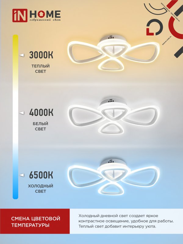 Характеристики Светильник светодиодный ELEGANT SANSA-W 60Вт 230В 3000-6500K 4700Лм 600х400х75мм c пультом ДУ белый IN HOME: