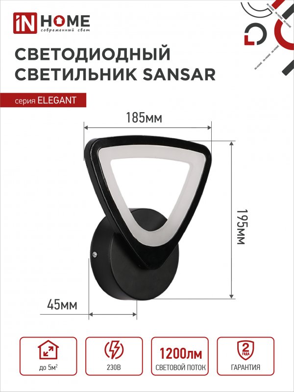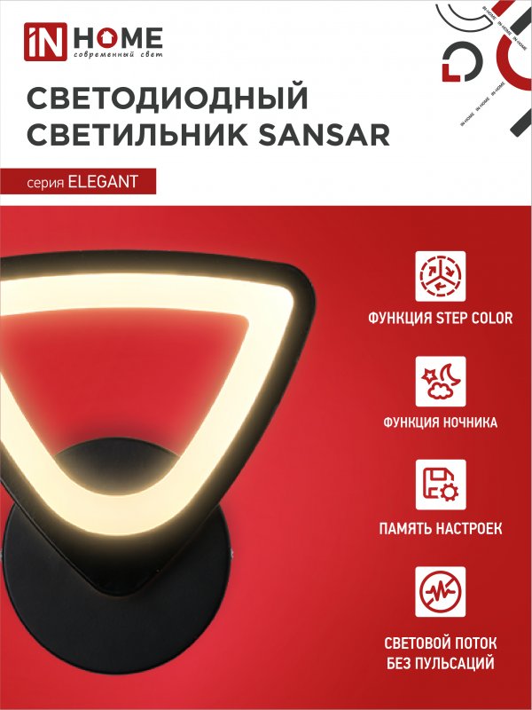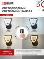 Характеристики Светильник светодиодный ELEGANT SANSAR-B 15Вт 230В 3000-6500K 1050Лм STEP COLOR черный IN HOME: