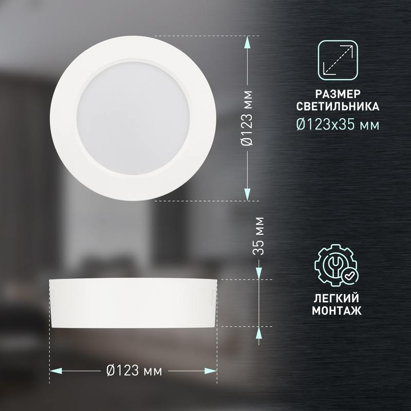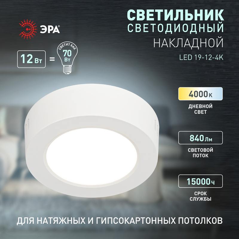Характеристики Светильник светодиодный ЭРА LED 19-12-4K накладной круглый 12Вт 4000К: