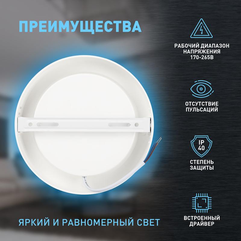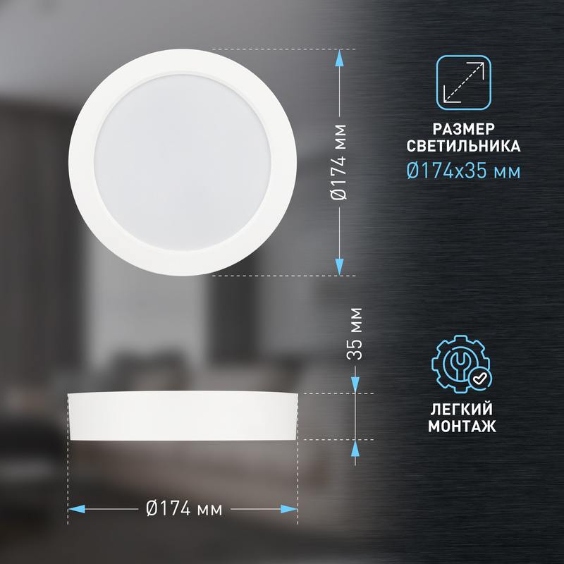 Характеристики Светильник светодиодный ЭРА LED 19-18-6K накладной круглый 18Вт 6500К: