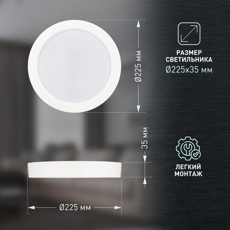 | Размер светильника | D225x35 |