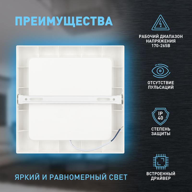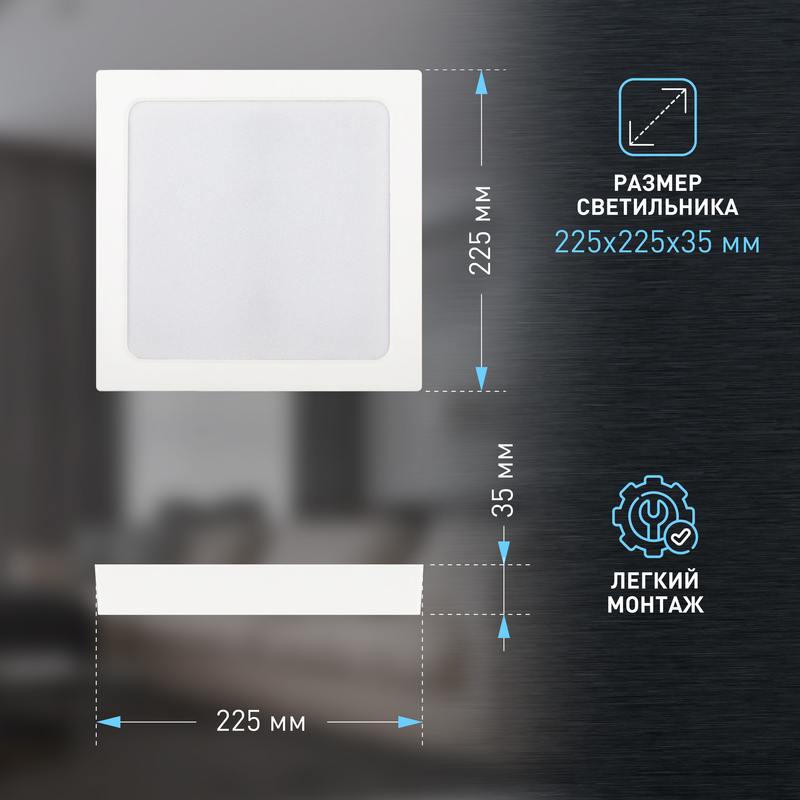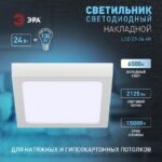 Характеристики Светильник светодиодный ЭРА LED 20-24-6K накладной квадратный 24Вт 6500К: