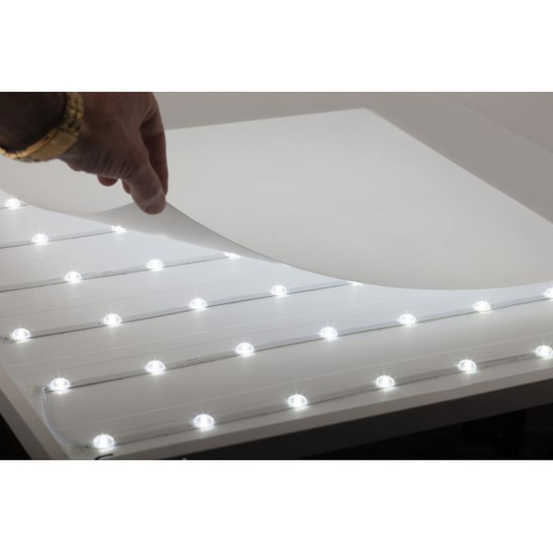 Светодиодная панель мощностью 40Вт и световым потоком 3800Лм. Светит, как ультратонкая панель приятным равномерным светом, и не уступает по яркости, при этом имеет значительно более низкую цену. Драйвер встроен в корпус светильник полностью готов к установке и легко монтируется на потолок любого типа как в качестве встраиваемого светильника, так и накладным или подвесным способом. Легко устанавливается в потолки Армстронг, на гипсокартонные, бетонные потолки. Позволяет в разы ускорить, а значит и удешевить монтаж. Светильник создайт качественный ровный свет: индекс цветопередачи Ra — выше 90, что обеспечивает отличную цветопередачу; коэффициент пульсаций — ниже 5% — соответствует самым жестким требованиям СанПин. Такое освещение рекомендовано для учебных, дошкольных, медицинских учреждений. Является идеальным решением для офисных и общественных пространств. Цветовая температура: 4000 К — естественный дневной свет. Габаритная яркость: 3550 кд/м2. Класс светораспределения: П. Класс по ограничению яркости: 1.