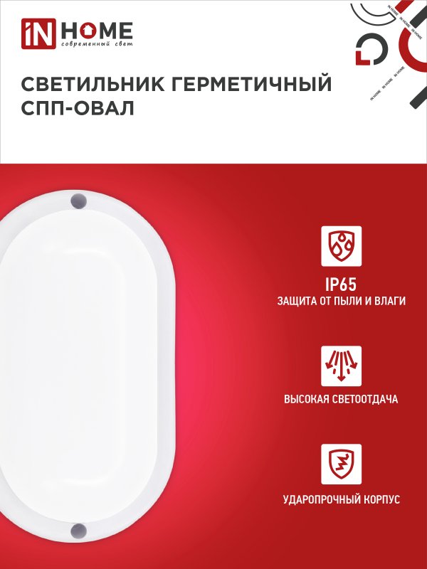 Назначение и применение Светильник светодиодный герметичный СПП 1065-ОВАЛ 10Вт 6500К 900Лм IP65 160х880мм IN HOME