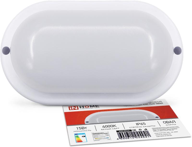 Характеристики Светильник светодиодный герметичный СПП 1540-ОВАЛ 15Вт 4000К 1350Лм IP65 160х88мм IN HOME: