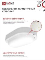 Назначение и применение Светильник светодиодный герметичный СПП 1540-ОВАЛ 15Вт 4000К 1350Лм IP65 160х88мм IN HOME