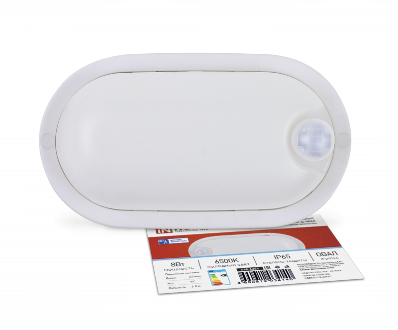 Характеристики Светильник светодиодный герметичный СПП-Д-ОВАЛ 8Вт 230В 6500К 640Лм с датчиком движения IP65 IN HOME:
