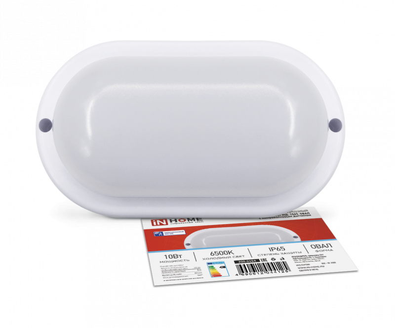 Характеристики Светильник светодиодный герметичный СПП МД-1065-ОВАЛ 10Вт 6500К 900Лм с микроволновым датчиком IP65 160х88мм IN HOME: