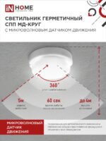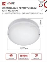 Характеристики Светильник светодиодный герметичный СПП МД-2065-КРУГ 20Вт 6500К 1800Лм с микроволновым датчиком IP65 155мм IN HOME: