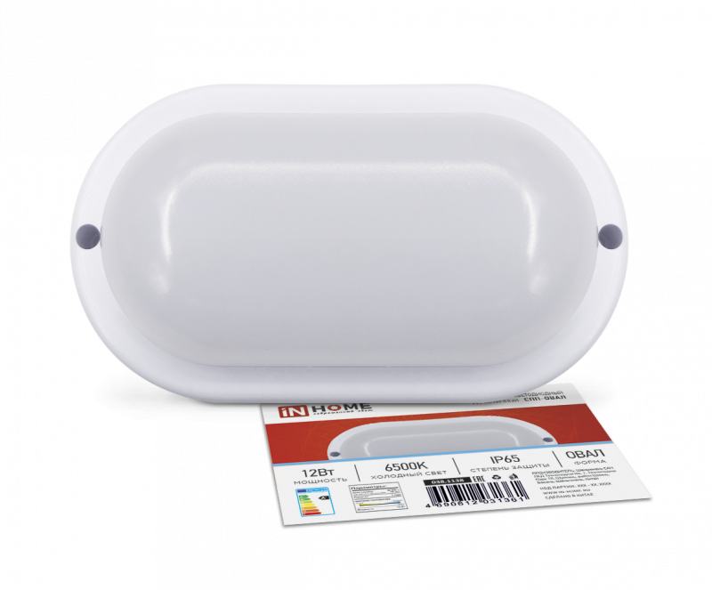 Характеристики Светильник светодиодный герметичный СПП-ОВАЛ 12Вт 230В 6500К 960Лм IP65 IN HOME: