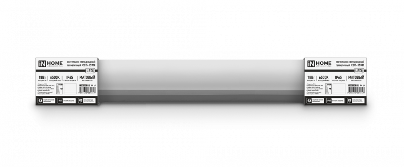 Характеристики Светильник светодиодный герметичный ССП-159М 18Вт 6500К 610х76х66мм нелинкаб. матовый IP65 IN HOME: